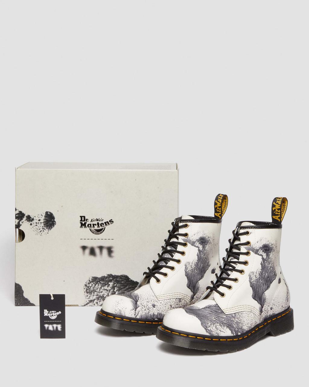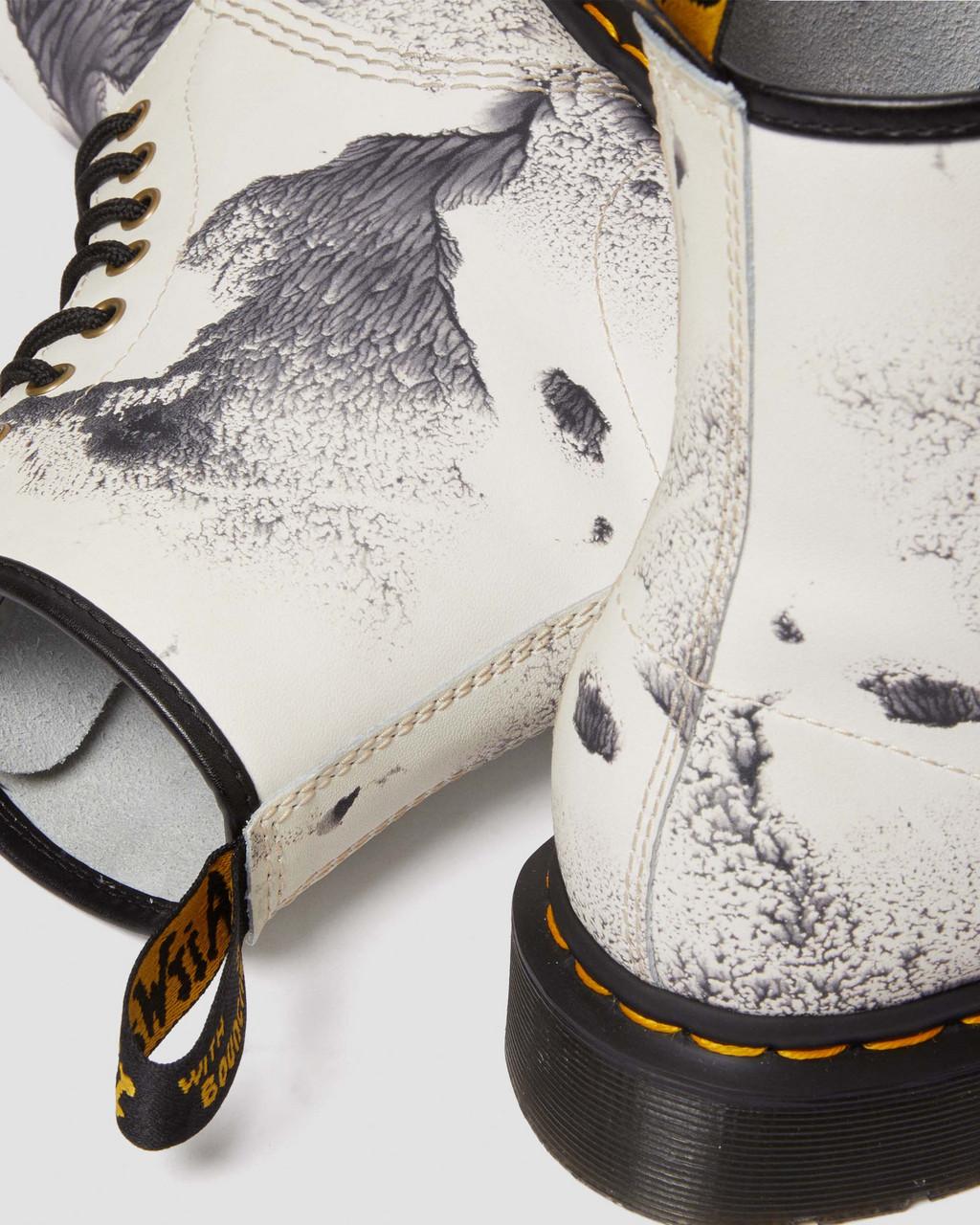 Crafted from soft, durable full-grain leather, these boots showcase a distinctive abstract decalcomania print, ensuring both unique style and lasting comfort with their Goodyear welted construction.