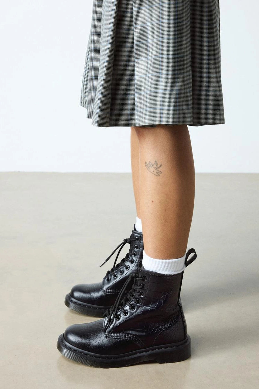 Crafted from faux embossed leather with a distinctive croc texture.