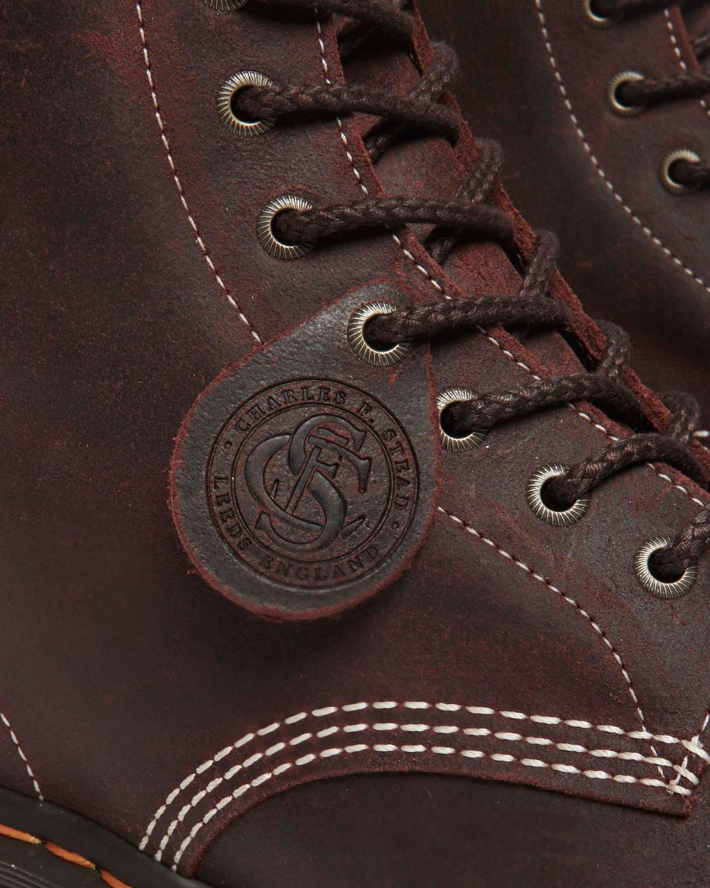 Crafted from heavyweight deeply waxed leather, these boots feature a vintage distressed two-tone finish. They are built with a durable Goodyear welt construction and a comfortable air-cushioned sole.
