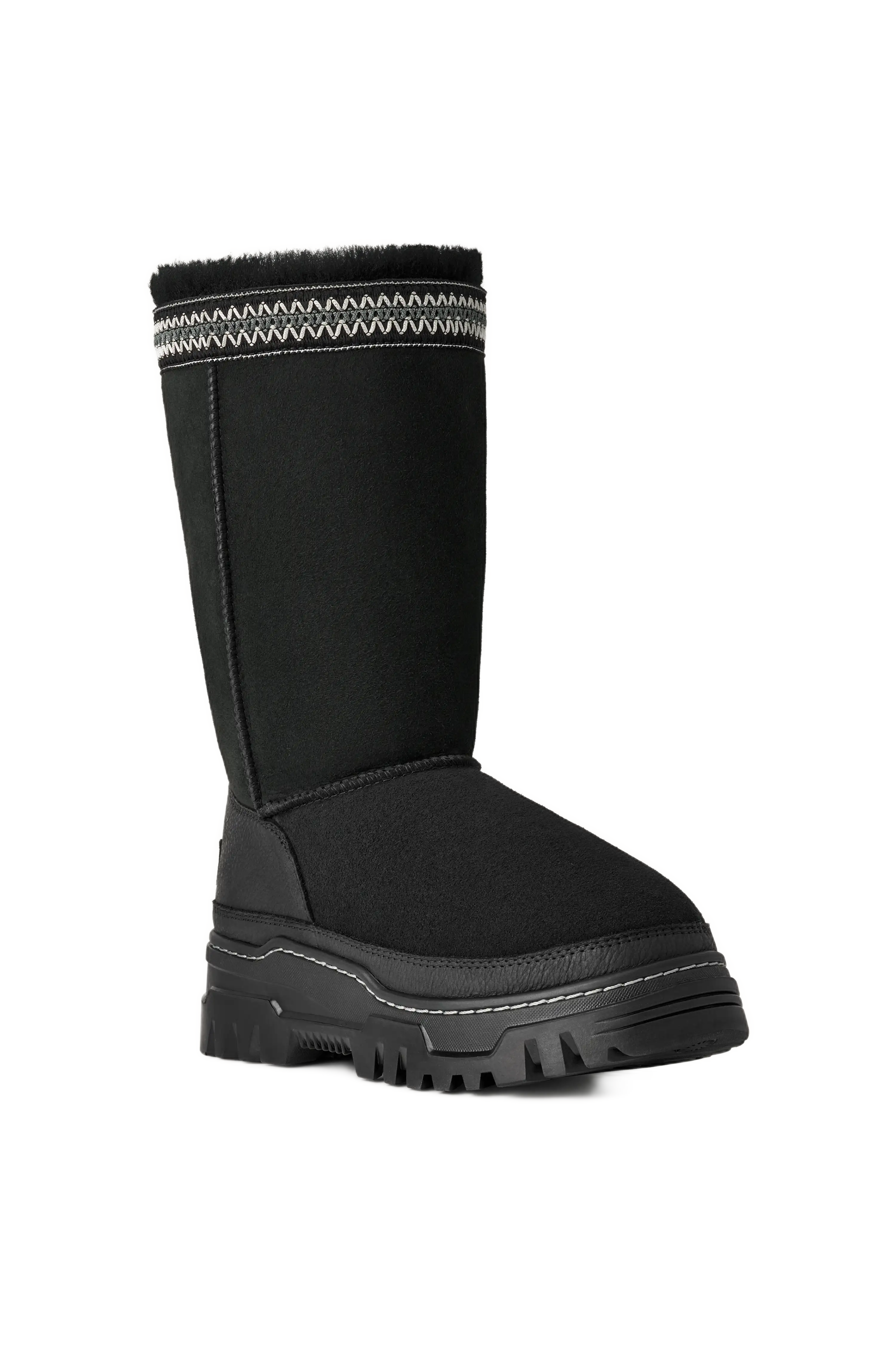 Waterproof sheepskin upper with leather mudguard and heel counter